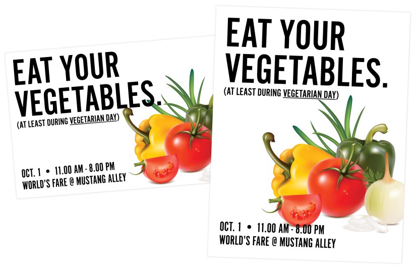 Promotional material were needed for several dining services events at a local university. Priorities were to communicate date, time, location, and purpose of the event. Simplistic designs with bold illustrations were used to attract the attention of students crossing campus. Materials included flyers, signage for napkin dispensers, posters, and more. *Artwork is not my own.