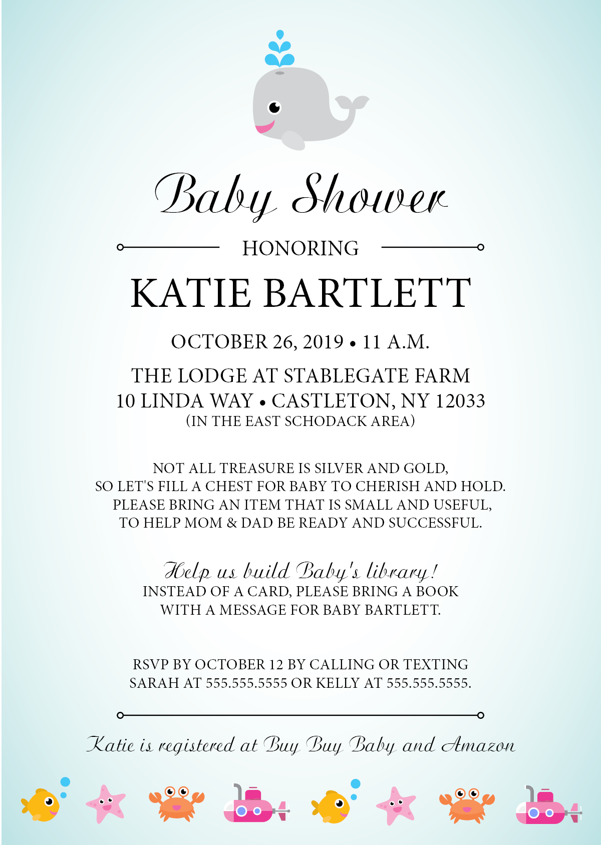 Below is an assortment of print invitations promoting ladies’ social events and gatherings, ranging from bachelorette parties to baby showers and more. In all invitations and concepts, my priority was to keep the designs simple, eye-catching, and classic. *Some artwork used is not my own.