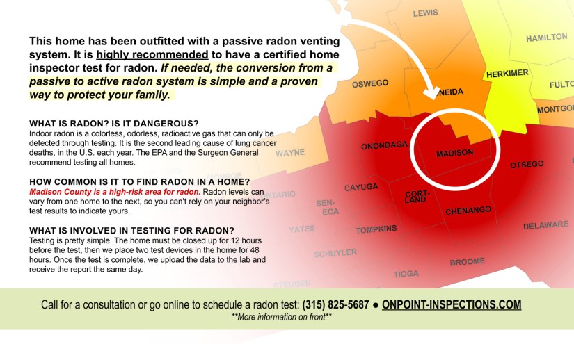 A local home inspector, Carl, was looking for print collateral to leave inside newly constructed houses educating the new homeowners of the dangers of radon and encouraging them to consider hiring Carl for testing.
